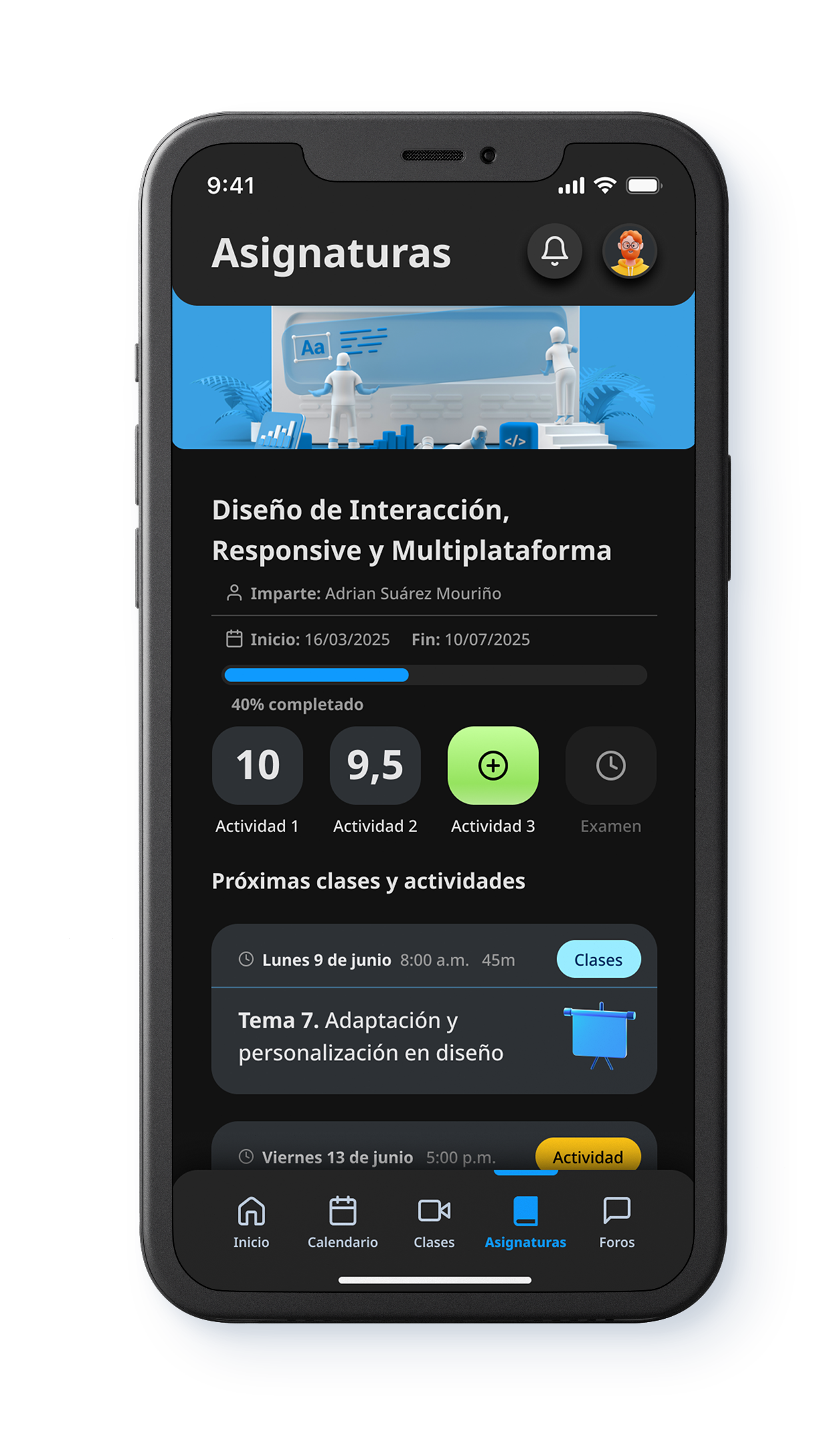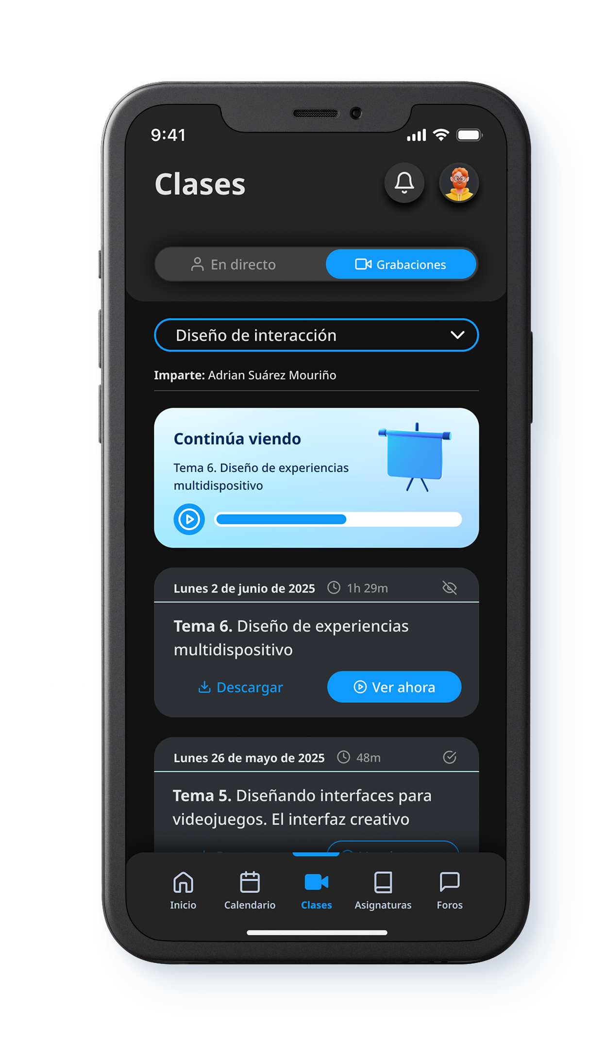 A partir de ese problema real, planteé una solución centrada en el estudiante: el diseño de una aplicación móvil que centralizara las funciones clave del campus, ofreciera mayor claridad sobre el proceso académico y permitiera gestionar el día a día universitario desde el celular. El objetivo fue transformar la experiencia de uso en algo más intuitivo, accesible y consistente: acceder a clases, entregar actividades, revisar avances y mantener una visión clara de la ruta de aprendizaje sin fricción.